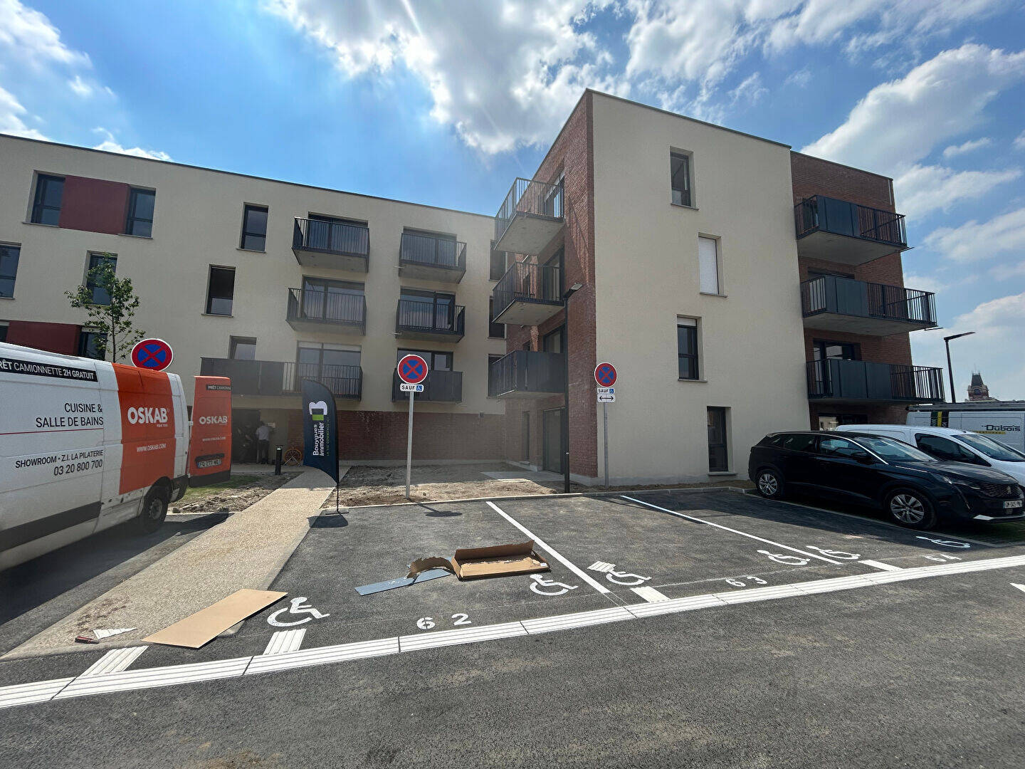 Armentières, rue Simone Veil, A louer Appartement type 2 dans une résidence neuve offrant un séjour avec cuisine équipée ouverte, un balcon, une grande chambre de 12m², une salle d'eau, un WC séparés- Loué avec place de parking- Disponible le 23 Mai-**Dispositif PINEL**