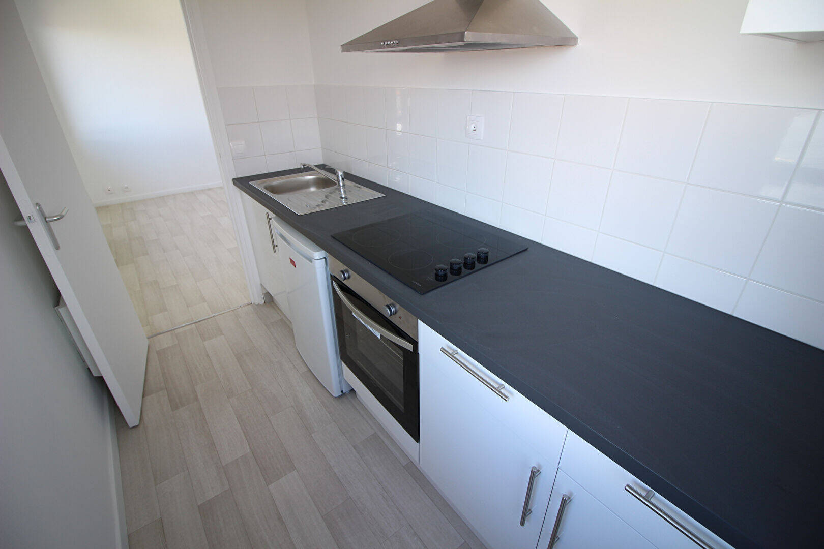 Appartement offrant un séjour, une cuisine équipée (meubles rangement, plaques, four, hotte) , une chambre ainsi qu'une salle de bains avec baignoire -Idéal pour étudiant, Disponible le 27 février