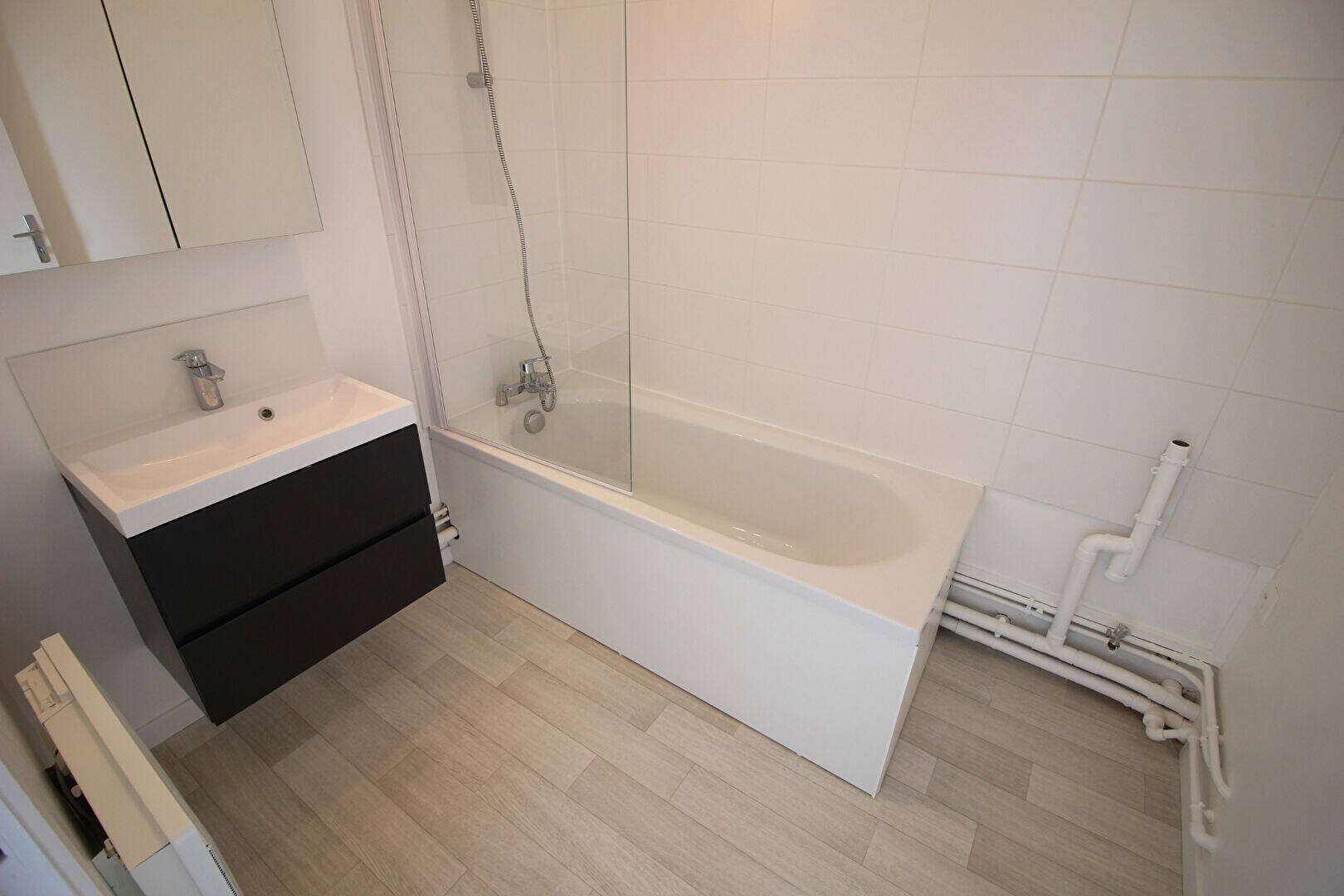 Appartement offrant un séjour, une cuisine équipée (meubles rangement, plaques, four, hotte) , une chambre ainsi qu'une salle de bains avec baignoire -Idéal pour étudiant, Disponible le 27 février